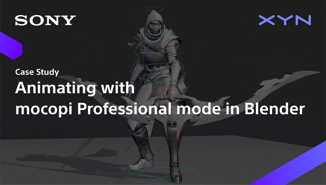 The scene shifts to a real-world setting, revealing a studio space themed in XYN’s signature purple tones. A man sets down documents on a table and adjusts a digital camera with a smartphone mounted on top.