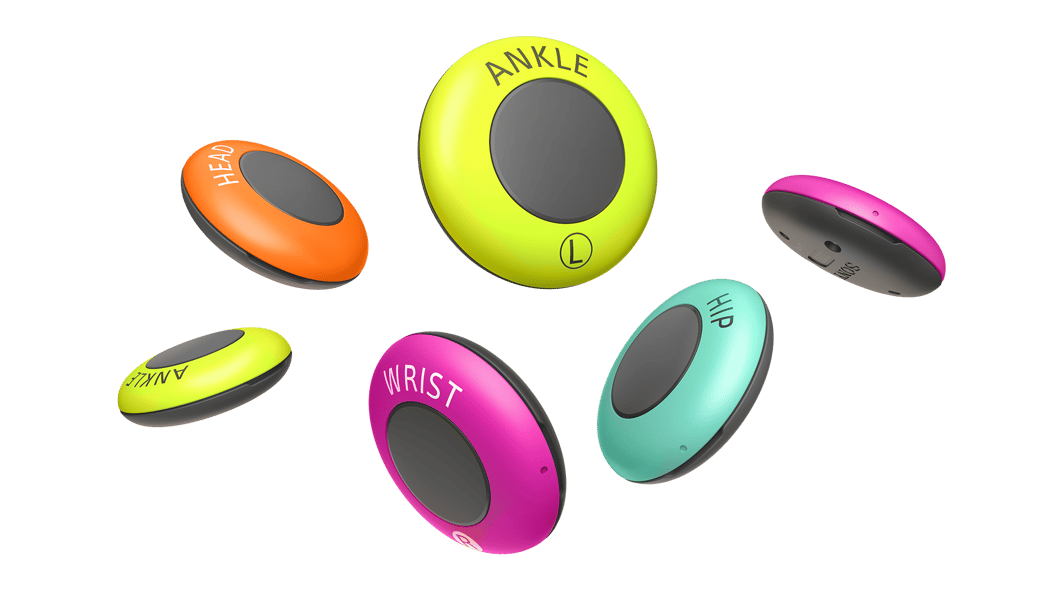 Back in the real world, a woman dons mocopi motion capture devices on her entire body.