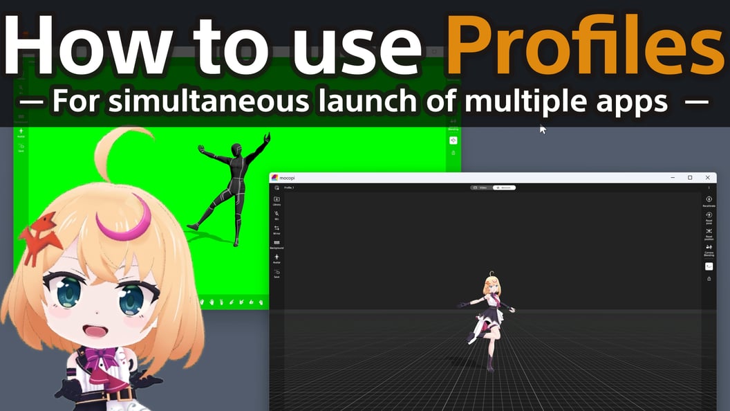 Directed by a man, the woman moves dynamically while wearing mocopi. The two work collaboratively, utilizing mocopi for motion capture.