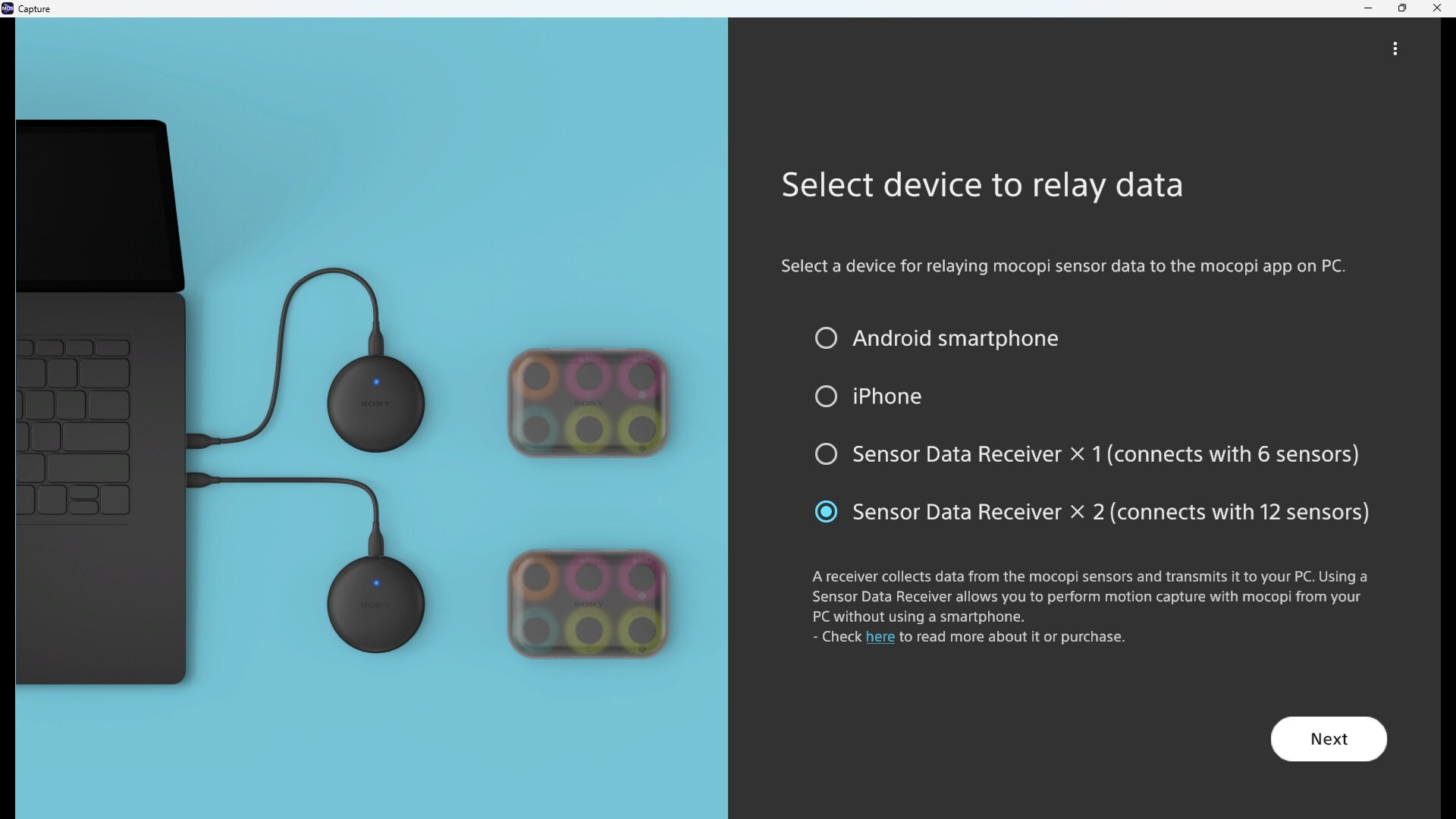 Dedicated receiver for direct connection between mocopi and PC